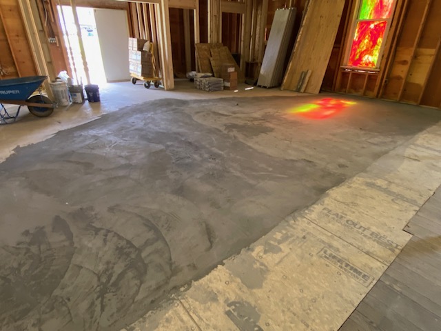 File this under big developments…the floor is now level! When the addition was put on in the late 1960s the floor was not level with the original floor in the older part of the building. But this has been corrected this week and we’re thrilled to have a fully level floor to build on!