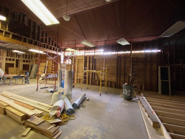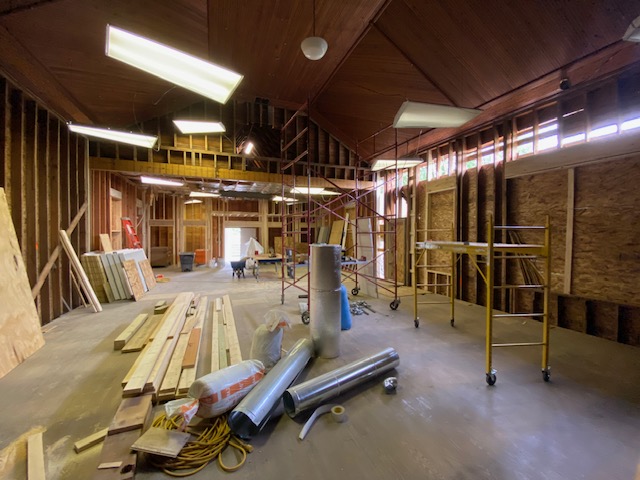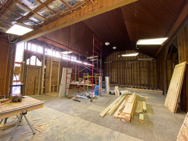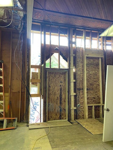 The boards are off and the studs are exposed and, for now at least, there’s lots of natural lighting. We promised that wall will be closed up before it rains!